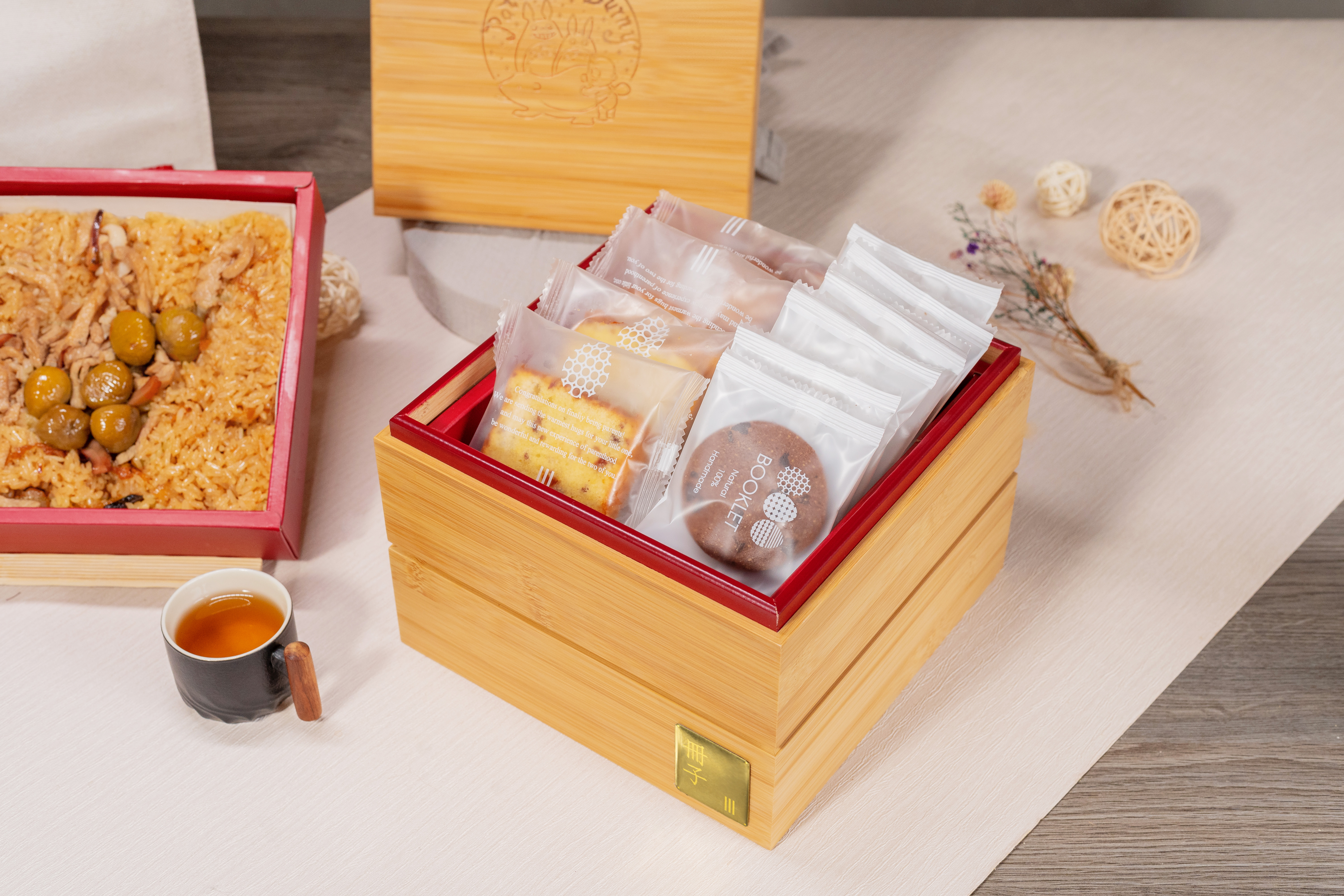 精緻木盒雕刻設計,內盛雙層美味饗宴