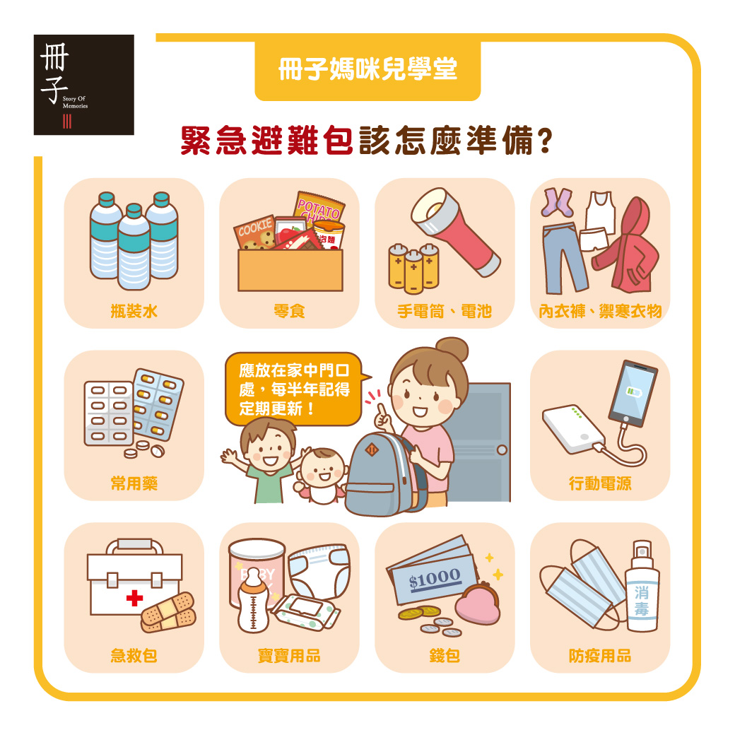 最近地震頻繁,大家要注意安全哦❤ 也提供大家 緊急避難包 該怎麼準備? ▎準備好緊急避難包,防震防颱免煩惱 落實防災準備,才能守護自己與家人 身處在地震頻繁的台灣, 事先預防作業是非常重要的。 除了平時備有防災演練與相關知識外, 也該養成定期更新準備避難包的習慣! 也趕緊分享給身邊的朋友 跟著圖片介紹一起準備避難包吧! 以方便攜帶且重要的物品為主, 並要放在家中顯眼且隨手可拿之處, 且至少半年檢查、更新一次內容物。 願一切平安❤ 逛更多冊子媽咪學堂小知識 >> 點我觀看