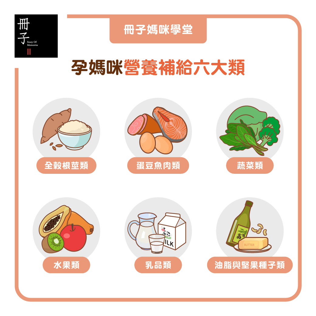 全榖根莖類、豆魚肉蛋類、蔬菜、水果、乳品類、油脂與堅果種子類,