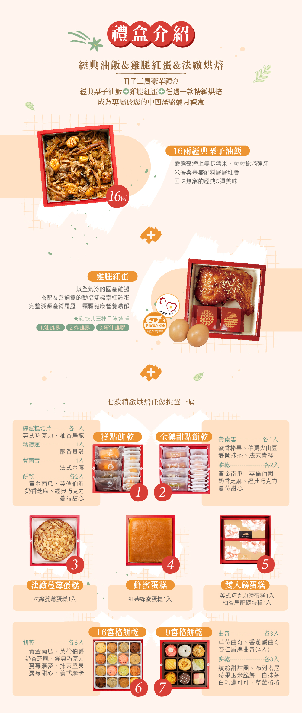 • 油飯口味:栗子葷油飯、栗子素油飯