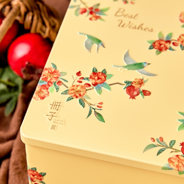 穿梭於石榴花間,更象徵著無私付出、豐盛富貴與子孫滿堂的意涵,能為家庭帶來好運,也能表達自己美好的祝願。